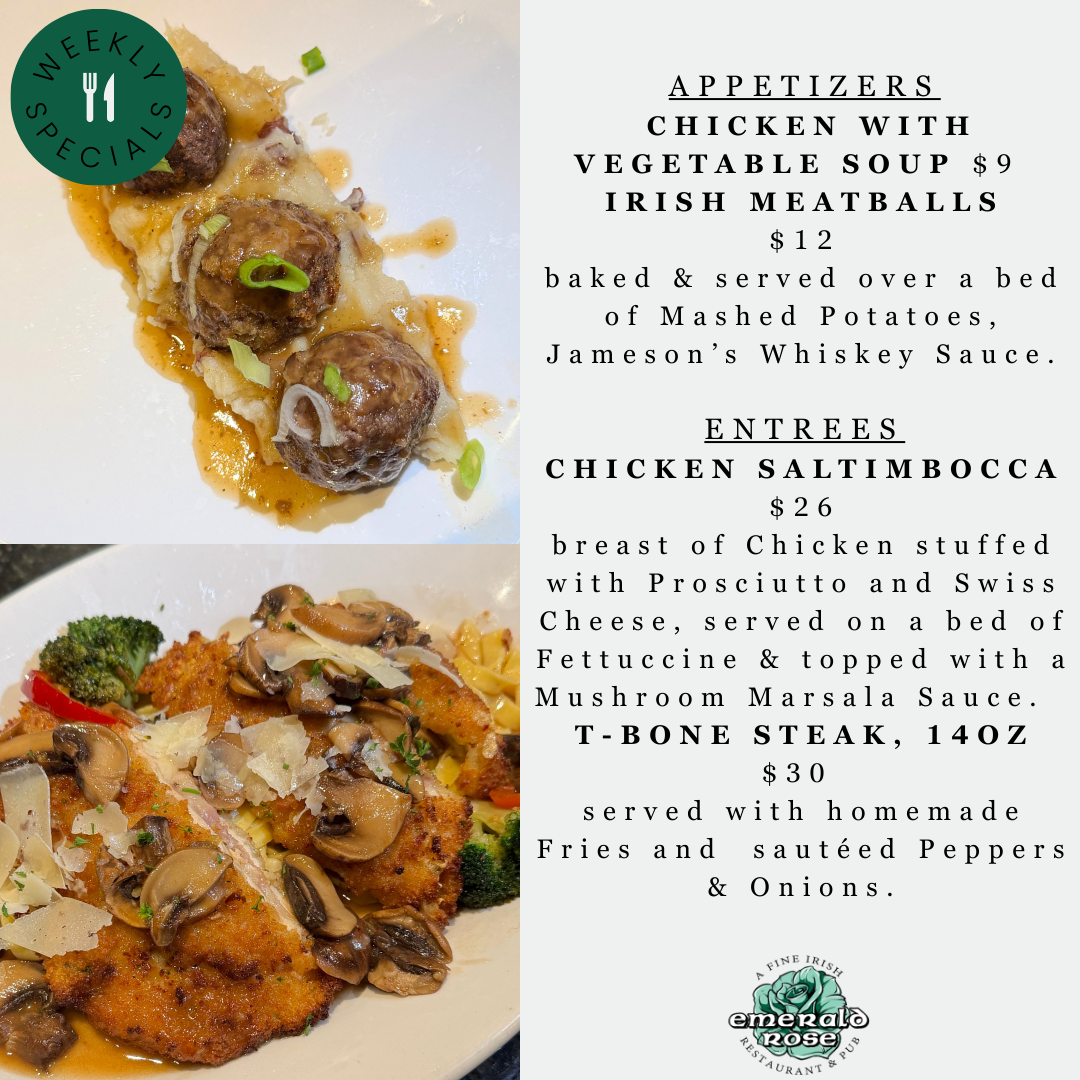 For twenty-five years The Emerald Rose has established the tradition of a genuine, warm welcome and first-rate friendly service which is now a hallmark of it’s rich ambiance, unrivaled vitality, charm and conviviality, unparalleled on Boston’s North Shore. For over two decades, friends and families have gathered over authentic Irish cuisine, ultimate comfort food offerings and our carefully curated selection of beverages.