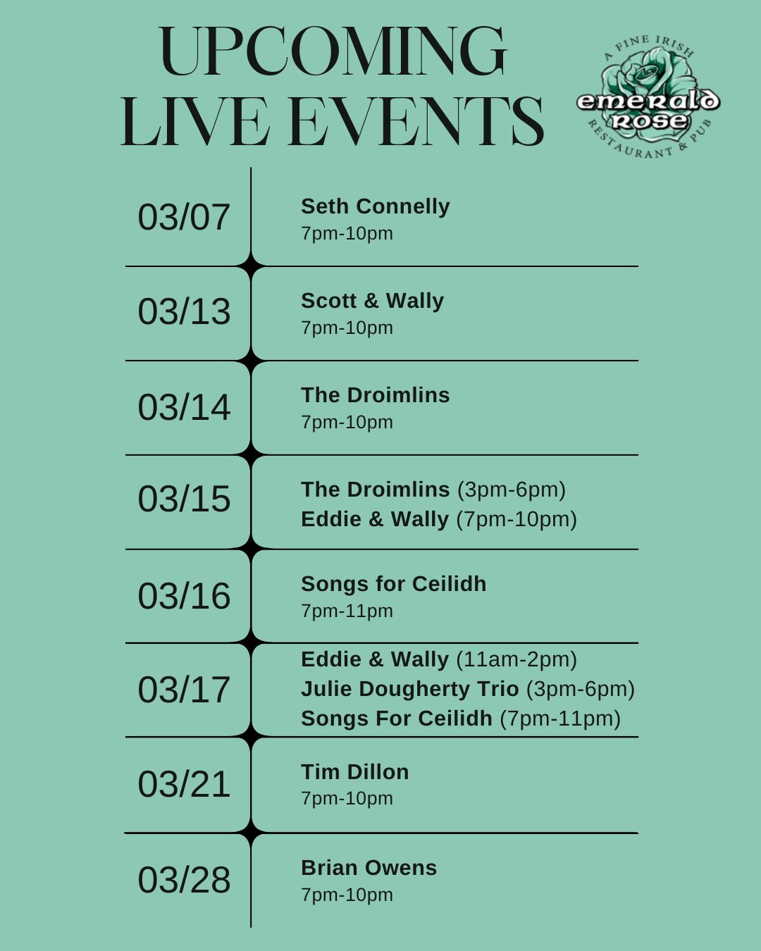 Host your group at The Emerald Rose and celebrate with traditional Irish hospitality. Our flexible spaces and customizable menu options make every gathering special and memorable.